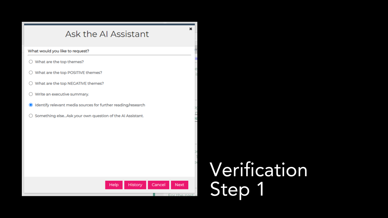 - The third step is to extend the insights process by digging into relevant media sites and web searches a bit further. Again, this is easy because the AI Assistant has a built-in function for it.