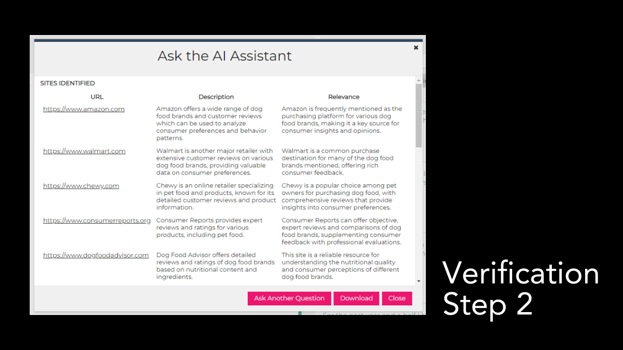 The AI Assistant’s information was a mix of things I knew along with a good bit of things I did not. One thing I know definitively is that AI can be trusted with verification, but never blindly. Understanding that A) I am not a dog food expert and B) making informed decisions is important to me, in this situation I took three validation steps.