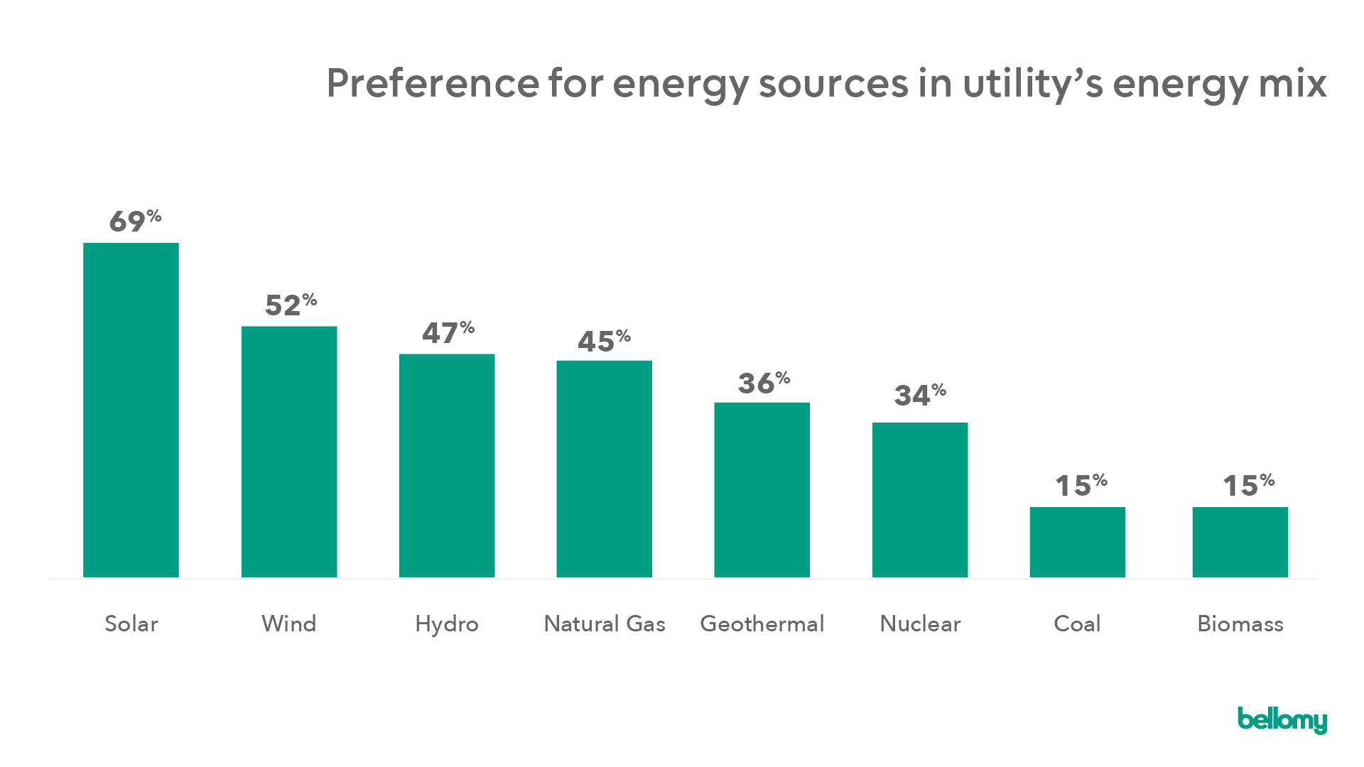 Through one of Bellomy’s Utility Heartbeat Polls, customers across multiple utilities were surveyed about their knowledge of energy mixes and their preferences for different energy sources.