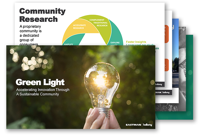 Eastman Chemical Company and Bellomy Market Intelligence teamed up to take a unique approach to engaging with environmentally- and socially-conscious consumers through an online community. Our presentation outlines how we are able to quickly uncover the opinions that ultimately steer innovation and create a sense of partnership with consumers.